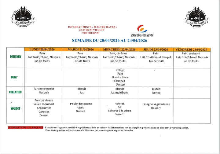 Menu 20-04 au 24-04-2026
